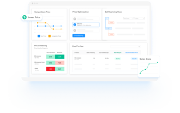 A: Dynamic pricing automatically adjusts prices based on rules. Price optimization recommends ideal price points based on trends, demand, and competitors. Wiser supports both via optional modules.